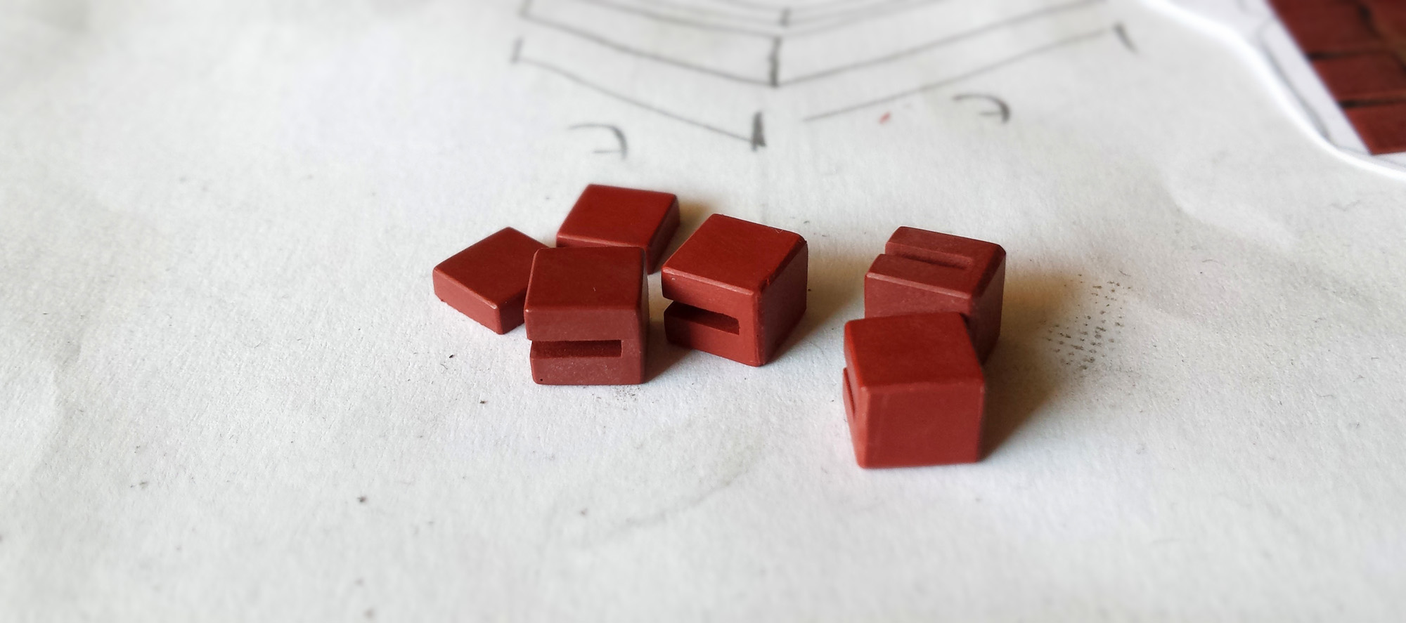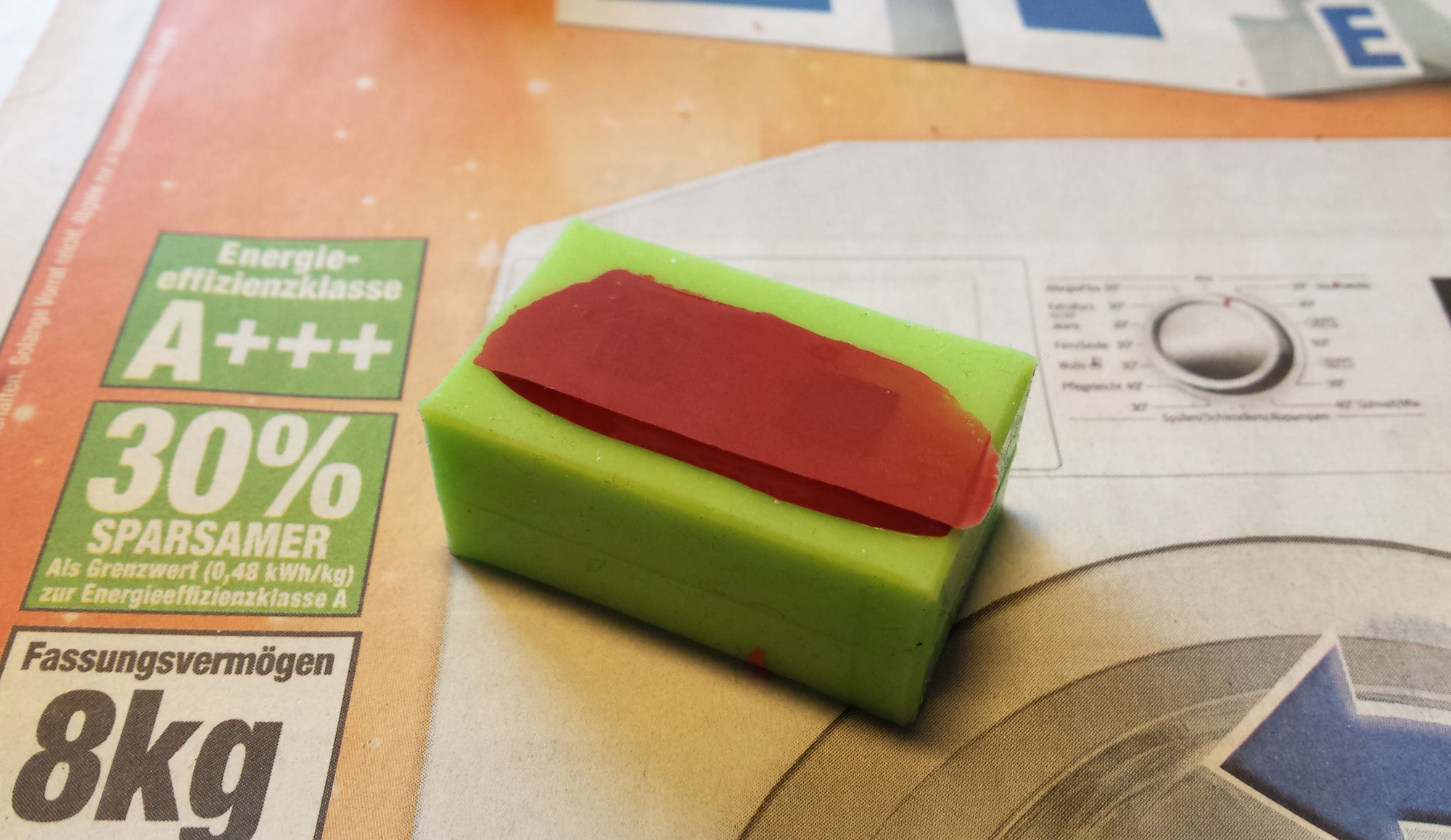 Mithilfe von Abformsilikon wird ich eine Negativform erstellt und die Teile mit rot gefärbtem PUR-Gießharz dupliziert. Es dauerte ein Stück, bis ich aus roter und schwarzer Farbpaste das richtige Mischungsverhältnis herausbekam.