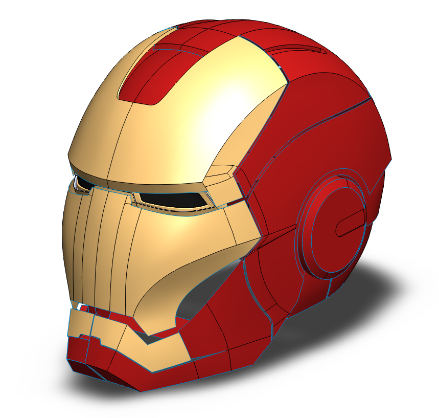 Ein virtuelles dreidimensionales Modell dient als Vorlage für weitere Schritte. Hiermit können Maße, Proportionen und Formen genauestens verglichen werden. Da es mehrere Versionen des Iron Man Anzuges gibt, entschied ich mich für die Version Mark 4, die im 2. und 3. Iron Man Film vorkommt und meiner Meinung nach am stimmigsten wirkt.