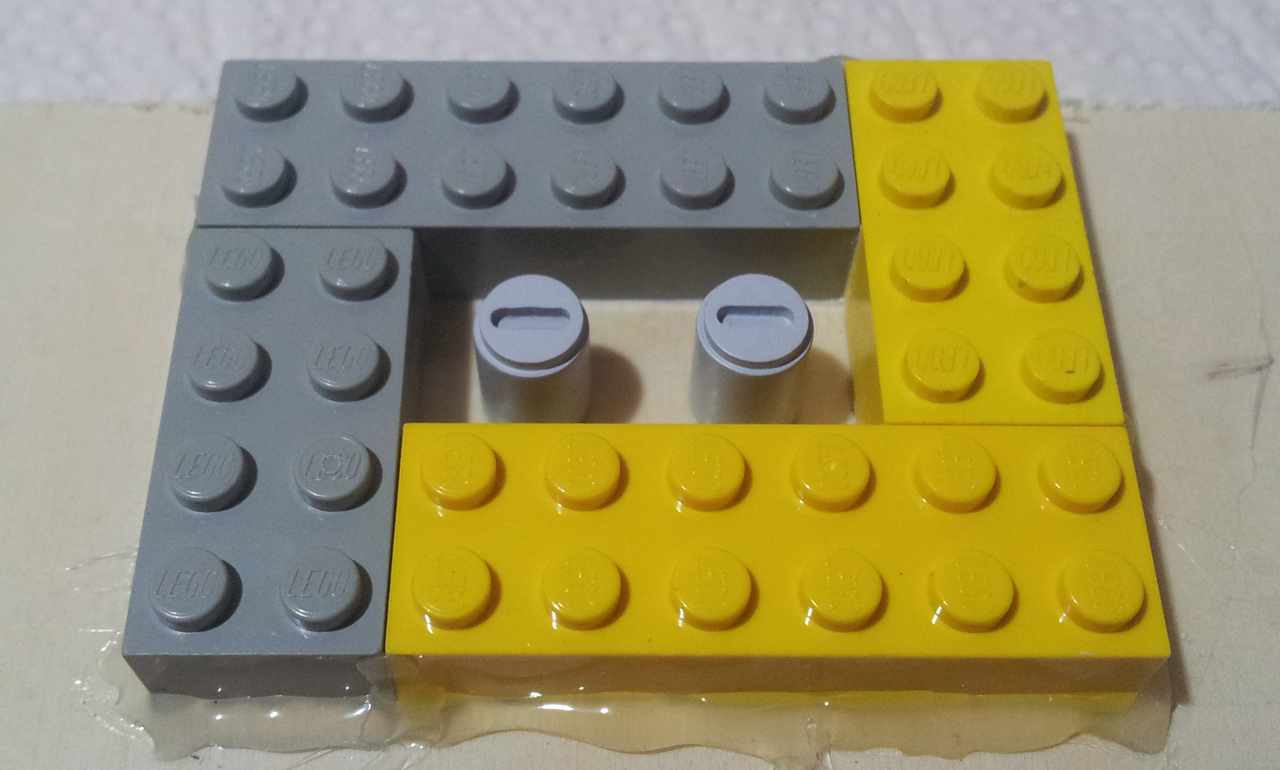 Zuerst wird die linke Hälfte abgegossen und der Helm dafür in die rechte Schale mit Plastilin eingebettet. Eingebrachte Vertiefungen im Plastilin sichern später das passgenaue Fügen der beiden Silikonhälften.