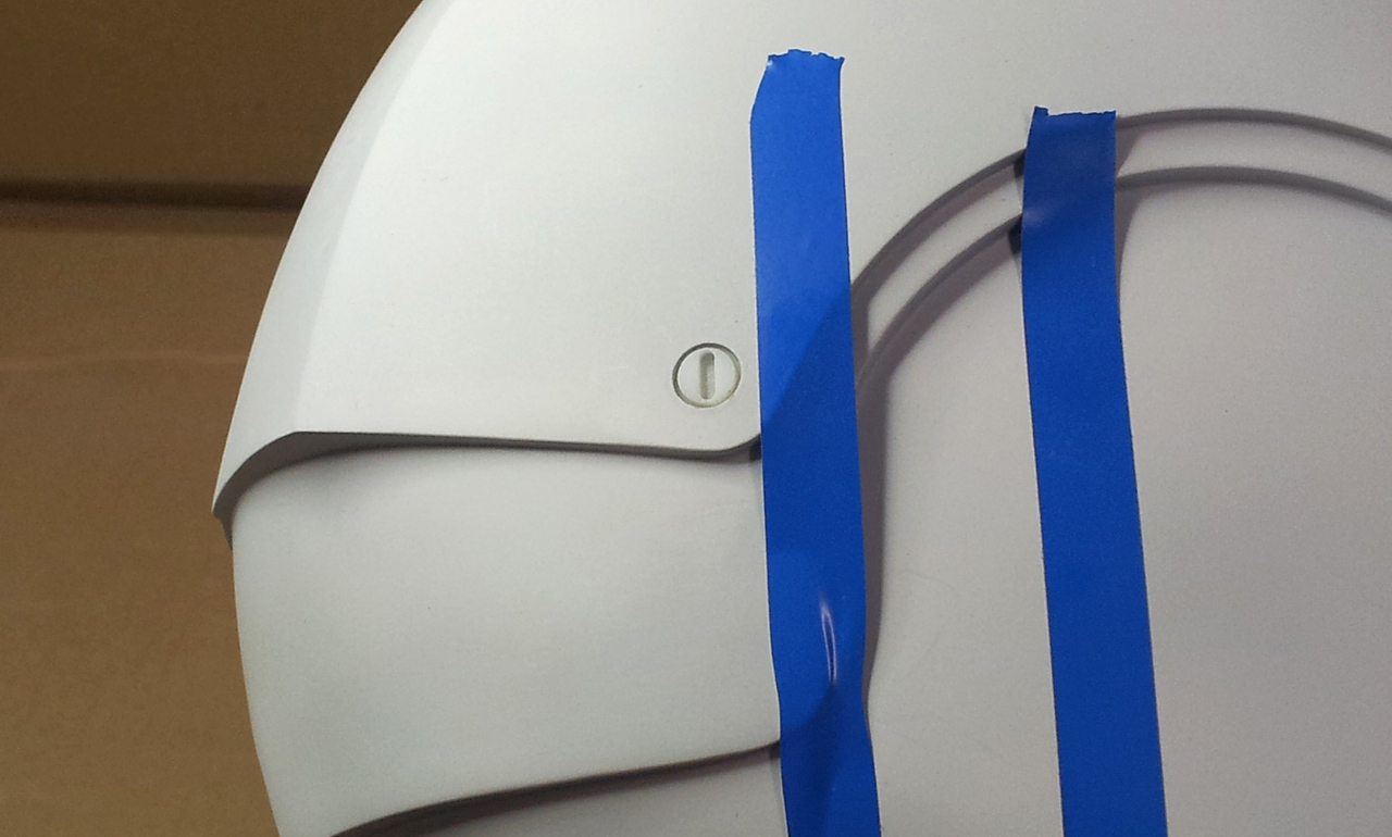 Unter ständigem Vergleichen mit Bildern und dem CAD Modell nähert sich die Grundform immer weiter dem Sollzustand an. Mit Tape lassen sich Kanten und Radien sehr gut markieren, sodass eine exakte Kontur geschaffen werden kann..