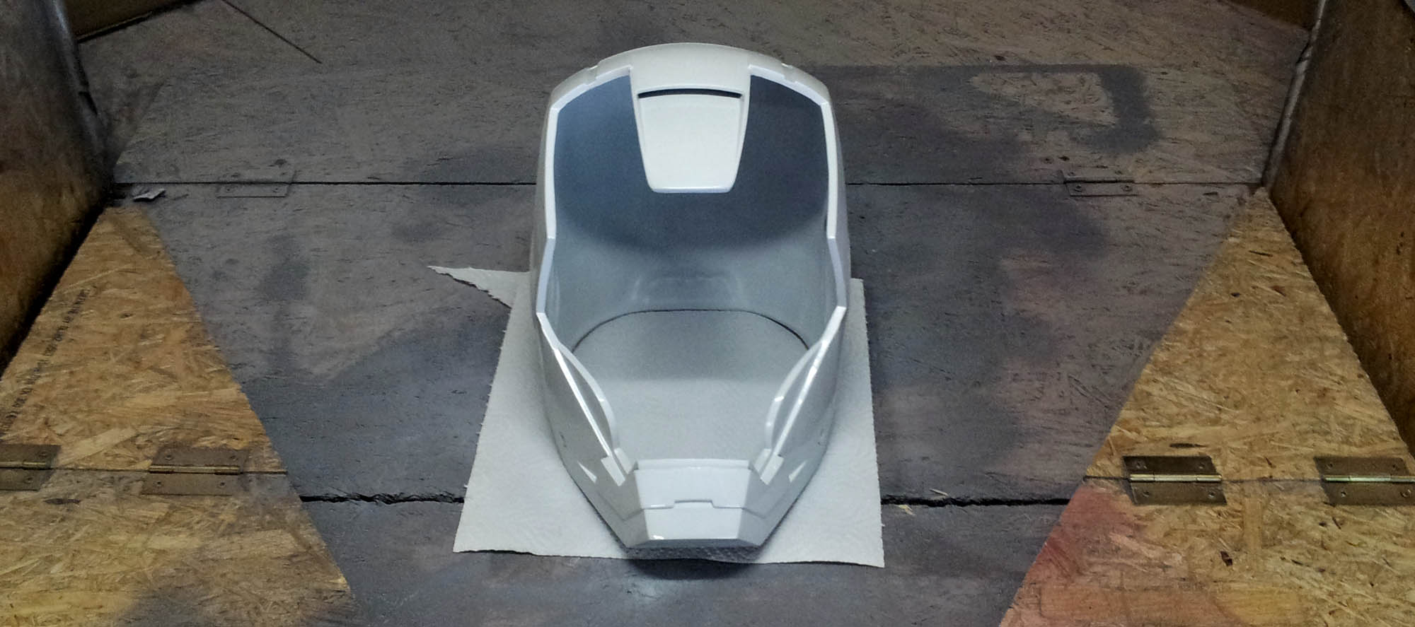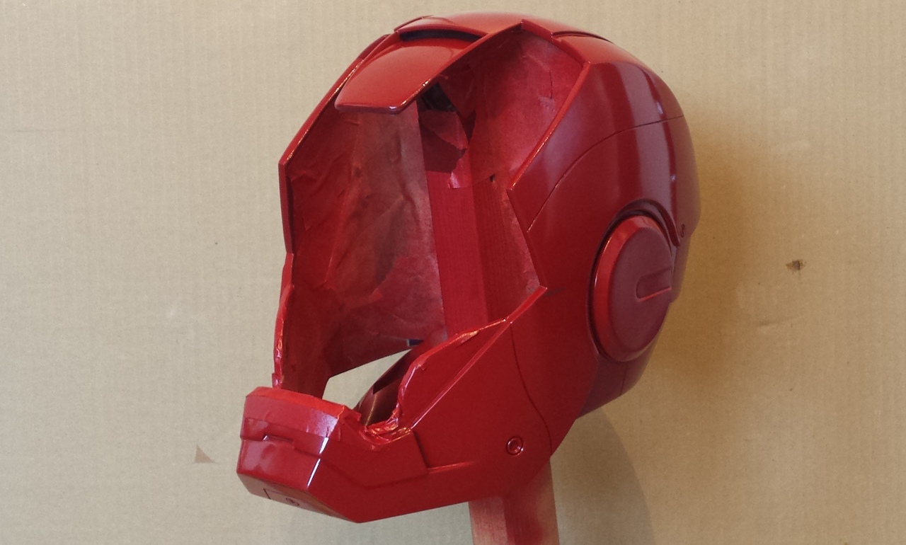 Das originale Metallic-Rot (Toyota 3Q3 Salsa Red) bereitete anfänglich Probleme, weshalb ich mich für einen normalen Rotton entschied, der auf die Grundierung in mehreren dünnen Schichten aufgetragen wird. Der kleine goldene Bereich am Kinn muss leider aufgrund eines Lackfehlers nochmal überlackiert werden.